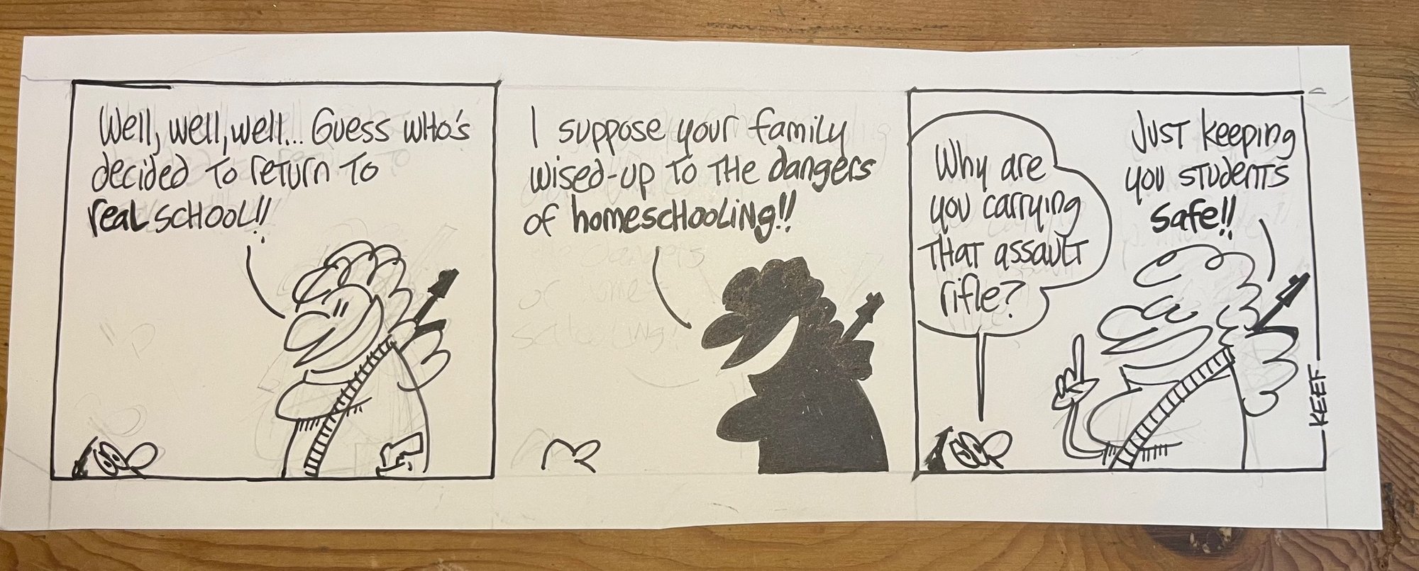 One-of-a-kind Black and White pen and ink drawing of Keef's nationally syndicated comic strip, signed by the artist.